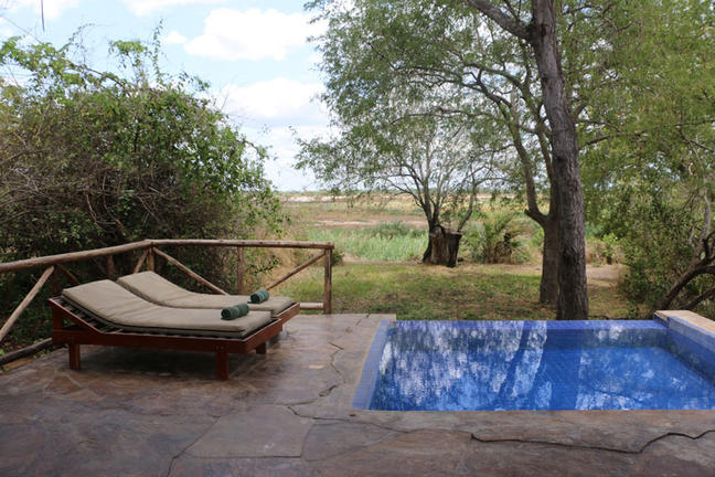 All tents are on an elevation and are well-spaced out and camouflaged with thick bush to ensure guests' privacy. Each tent is home to an en-suite bathroom with flush toilets and hot and cold running water showers and are equipped with all desired comforts and luxuries. The camp houses a beautiful large circular main area and a small swimming pool which guests can use to cool down after a day in the African sun.