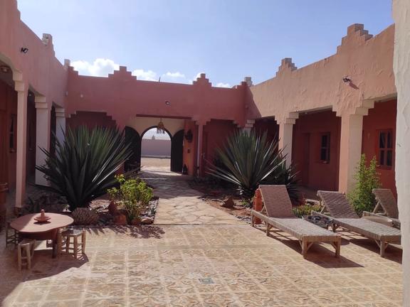 Le Ksar Tafnidilt, situé dans la région de Guelmim au Maroc, près de Tan-Tan, est une maison d'hôtes rustique du désert qui offre aux voyageurs une authentique oasis de confort et de culture. L'établissement propose des chambres de style local équipées de salles de bains privatives, ainsi que des hébergements de groupe et une aire de camping pour les aventuriers. Vous pourrez déguster des dîners marocains traditionnels dans les espaces intérieurs ou sous les étoiles sur la terrasse, complétés par un bar pour des rafraîchissements. Les attractions voisines incluent la plage de Tan Tan, le musée d'art et d'histoire de Tan Tan, la luxuriante oasis d'Oued Jenna et le parc national d'Oued Massa.