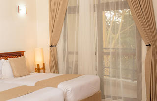 Spacious rooms with twin or doublé bed located in bungalows and set in three private wings that connect through pathways.