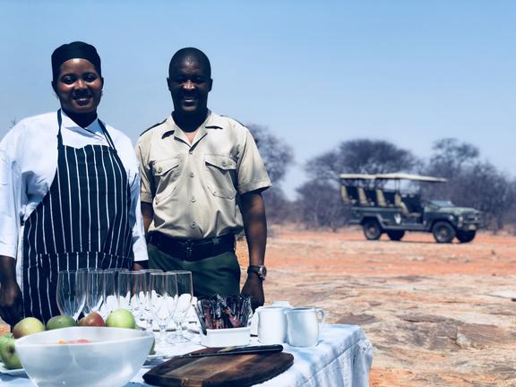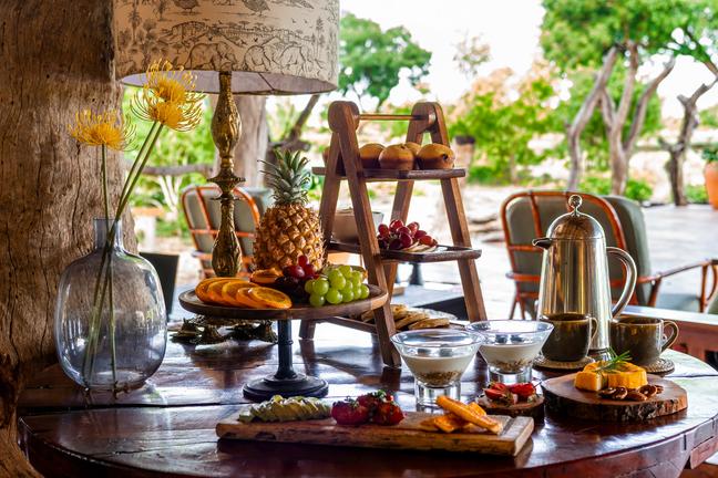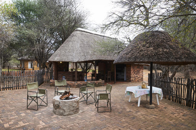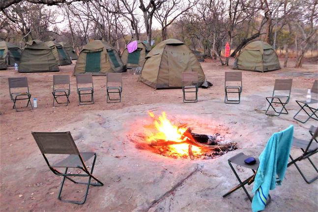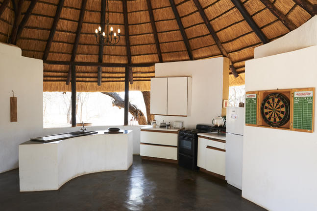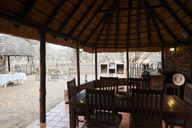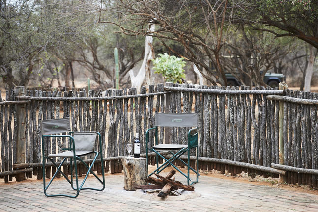 Jedes Camp verfügt über einen privaten Boma, komplett ausgestattet (mit Geschirr, Besteck, Töpfen und Pfannen) für das Kochen im Innen- und Außenbereich auf Gas oder Feuer und Essen. Koch- und Essbereiche befinden sich unter Stroh und im Freien. Holzfeuer werden für die Gäste in der Mitte der gepflasterten oder Estrich-Terrassen angezündet, ideal für Mahlzeiten im Freien und Sternbeobachtungen.