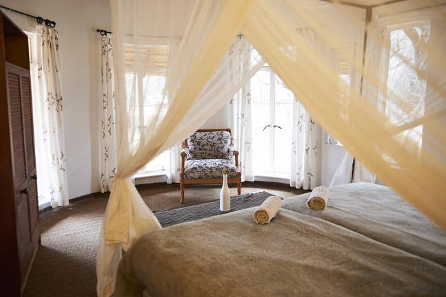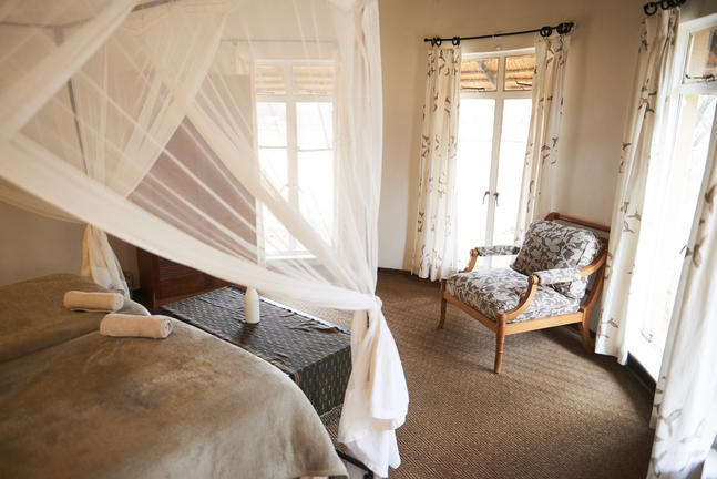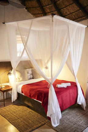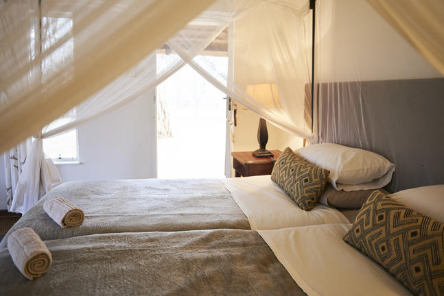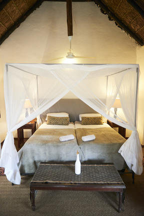 Die Cottages befinden sich in kleinen privaten Lagern. Alle Zimmer verfügen über eigene Duschen und hochwertige Betten mit feiner weißer Baumwolle Bettwäsche und Handtüchern, Deckenventilatoren und Moskitonetzen. Alle Zimmer und private Campingzimmer sind mit Klimaanlage für die warmen Botswana Nächte ausgestattet!