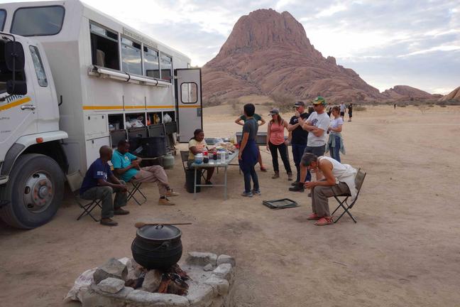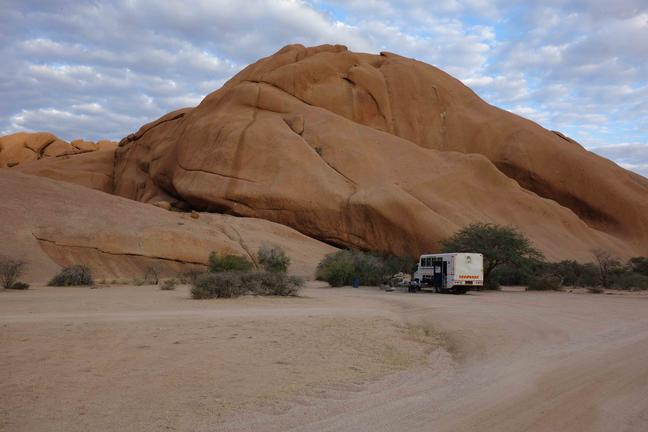 Das Spitzkoppe Camp ist ein Gemeinschaftscamp, das von der örtlichen Gemeinde erbaut wurde. Vorher gab es keinen Campingplatz in der Gegend und die Besucher mussten wild campen, dann hat die Gemeinde einen Campingplatz eingerichtet und Bungalows gebaut, die vernünftige Einrichtungen zum Campen bieten. Es gibt Waschplätze, Toiletten und Duschen.