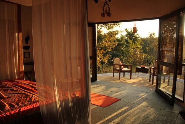 The lodge has set strong principles of being environmentally friendly and every aspect of its development and operation is sensitively synthesized towards nature conservation. Since it is located close to Bandhavgarh National Park and to the entrance gate, (near Tala village) guests can listen to the sounds of the Jungle right in their backyards! In the morning you wake up to a symphony of bird songs, while at night you can often hear the alarm calls of deer, which alerts you to a tiger on the prowl !