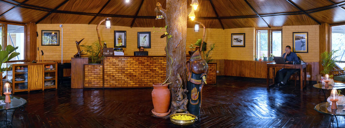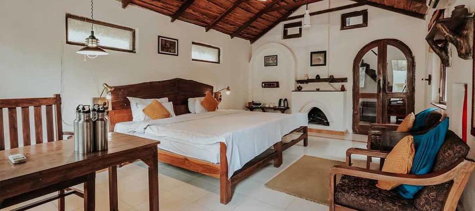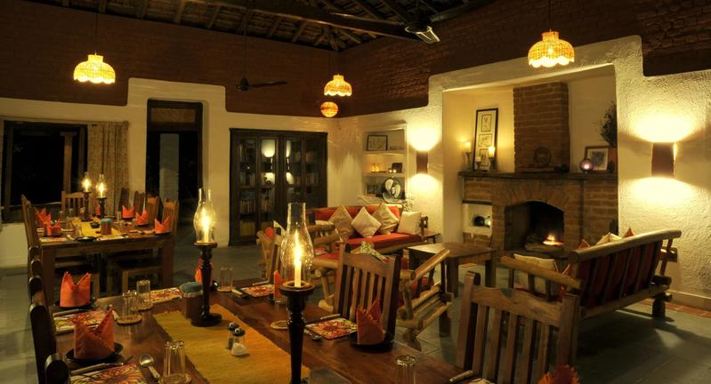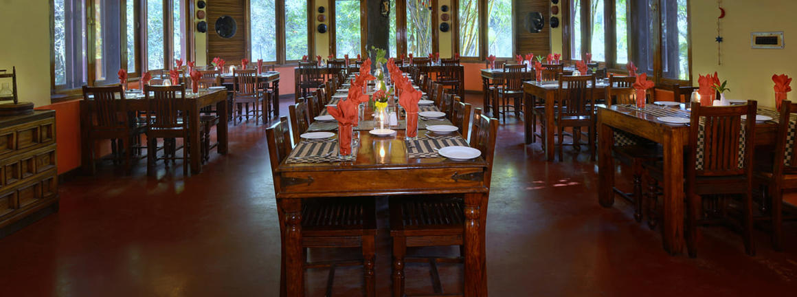 A spacious thatched dining room which serves home cooked Indian food and Continental cuisines, becomes the centre point of activities like campfire performances, lectures and star gazing.