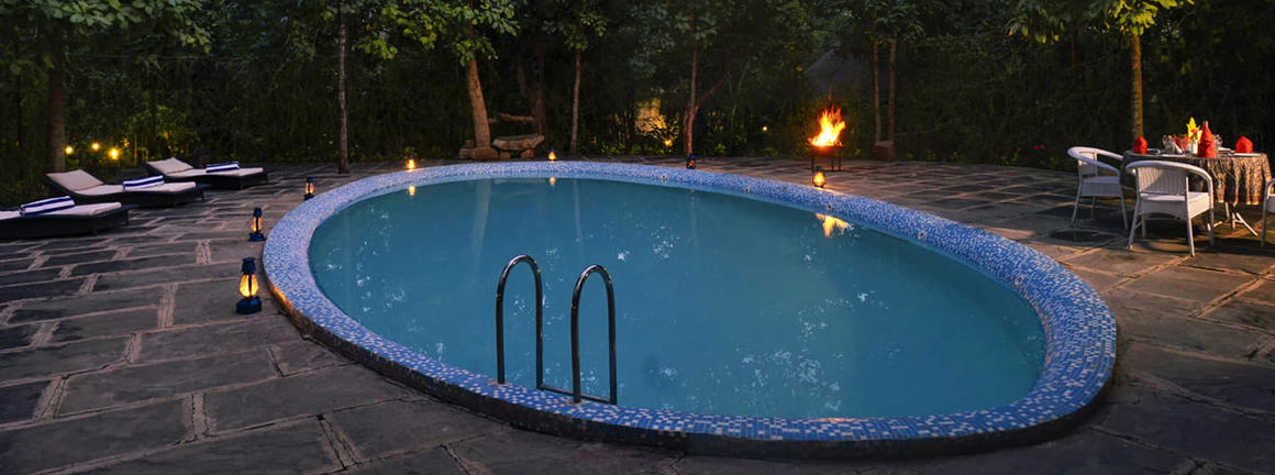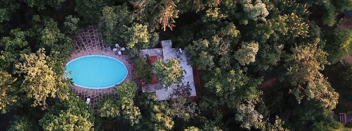 Forsyth is a small wildlife lodge set in 44 acres of jungle at the edge of the Satpura Tiger Reserve. Forsyth Lodge consists of 12 cottages built in an arc around the lodge building. The main building holds spacious dining areas, a library devoted to Indian wildlife, a lounge, several fireplaces and the Forsyth Bar. The first floor opens out to terraces featuring a telescope for star gazing in the evenings. There’s also a swimming pool that is conveniently close to the cottages.
