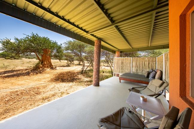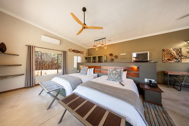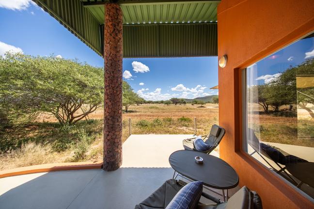 Okonjima Plains Camp is within the secluded wilderness area of Okonjima Nature Reserve and has majestic sunset views. Its design honours the Hanssen’s family cattle-farming history with its accommodation facility of 11 large View Rooms and 14 spacious Classic Rooms. The Plains Camp Barn includes a dining and lounge area, a curio shop and a terrasse with views over a waterhole and the Okonjima plains.