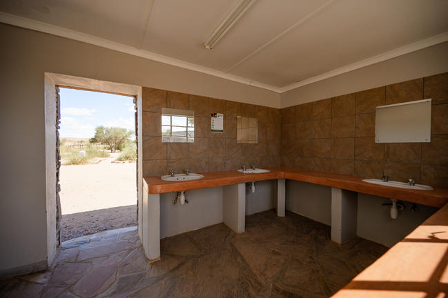 Large old camel thorn trees greet camping guests at the Desert Horse Campsite in a small valley of the Aus Mountains. Each of the ten sites is equipped with a tap, table, grill and windbreak. Neat shower and toilet facilities are within easy reach of each site. Barbecue packs are available at the reception of Desert Horse Inn (1.5 km); those who like to skip cooking for a change are more than welcome at the Inn's restaurant (subject to space available, please enquire upon arrival). Note there are no power point outlets at the Desert Horse camp. If you have equipment that need to be charged it can be done at reception of Desert Horse Inn.