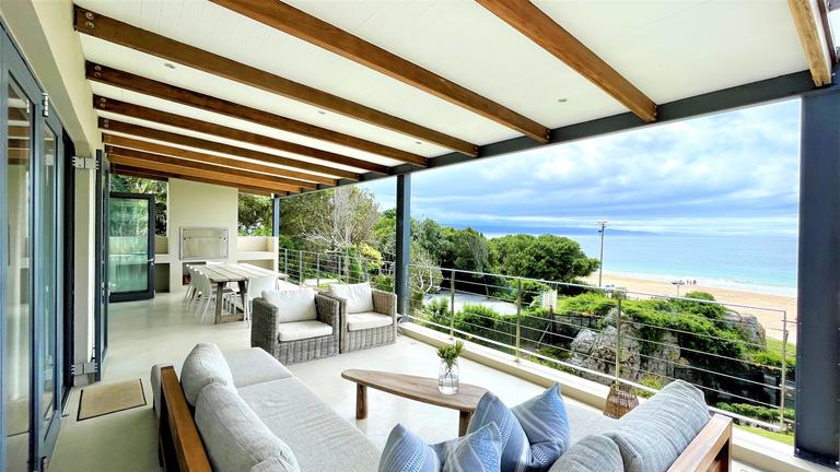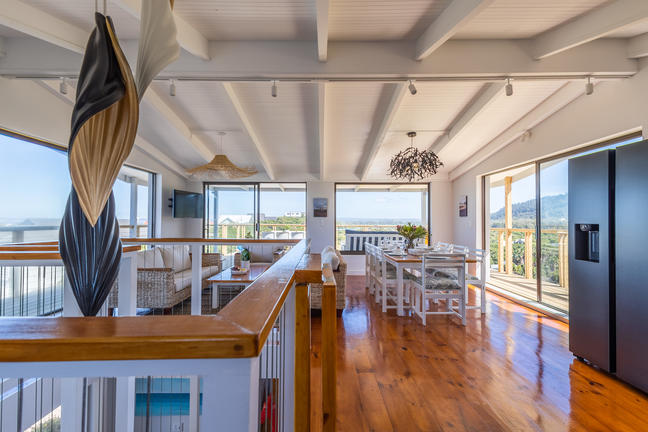 Ett vackert strandhus på tre nivåer beläget i en privat egendom med direkt tillgång till Keurbooms Beach. De öppna vardagsrummen ligger på översta våningen med stora skjutdörrar i glas som välkomnar utsikten. Alla fyra sovrum är smakfullt inredda.