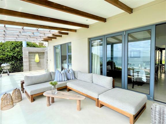 Denna fantastiska moderna strandvilla ligger på den vackra Keurbooms Beach. Denna villa har designats för utomhusliv och har en direkt gångväg till stranden. Ej lämplig för små barn.