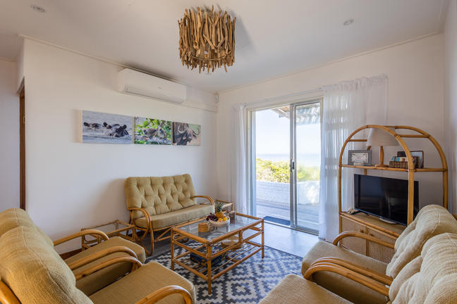 Beläget i den naturliga skönheten i Keurbooms, i en privat egendom, ligger denna härliga strandstuga med vacker havsutsikt på första raden. Rullande gräsmattor leder direkt ner till Keurbooms Beach. Vardagsrummet är ljust och luftigt och det finns 3 bekväma sovrum.
