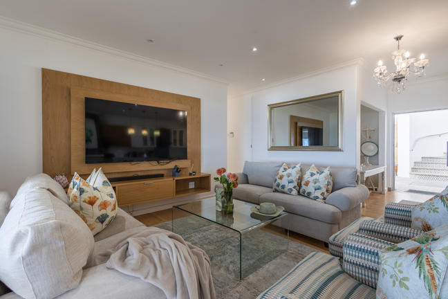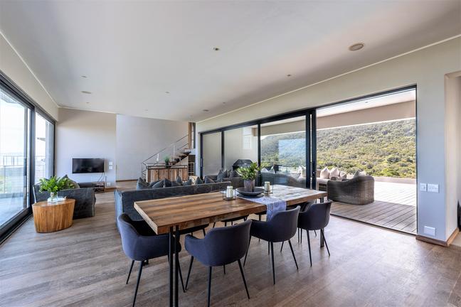 Underbar, exklusiv villa med spektakulär panoramautsikt som sträcker sig över havet. Toppfinish och designad för enkel underhållning och för att maximera den fantastiska utsikten. Med bara en kort promenad genom trädgårdsporten och ut på stranden.