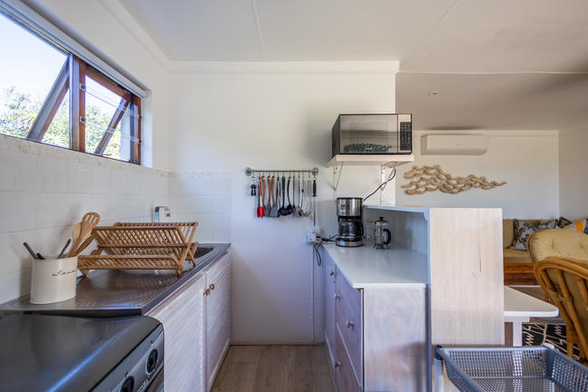 Denna härliga strandstuga med två sovrum ligger i den allra första raden vid havet i ett privat strandnära bostadsområde i Keurboomstrand. Det är bekvämt inrett med vardagsrum i öppen planlösning och ett välutrustat kök. Den har direkt tillgång till stranden