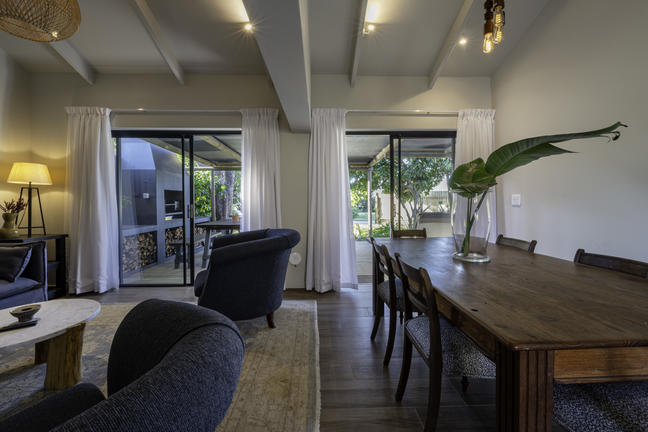 Vi älskar detta vackra familjehem i norrläge. Det ligger inom gångavstånd till Robberg Beach och har utsikt över det mest fantastiska inhemska grönbältet. Fastigheten har designats vackert för den ultimata strandhuskänslan.