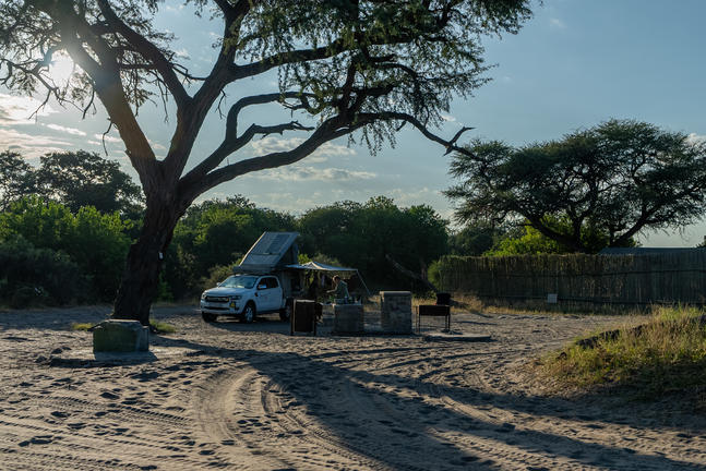 Khwai (formerly known as North Gate) is a group of sites in the Moremi Game reserve. The area is well known for it's extensive variety of animals and the San Bushmen, who have a growing community nearby. Campsites are grouped together with their own fireplaces but sharing two ablution blocks with solar lights and ensuite showers and toilets. The campsites are not fenced, be alert.