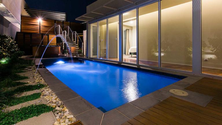 No matter what time of the year, the private outdoor heated pool with its gorgeous rain shower waterfall feature will add to your indulgent water experience. Pastiche is also very spacious with an interior of 96sqm and a combined area including the outdoor living space of 220sqm. Plenty of room to stretch out and relax.