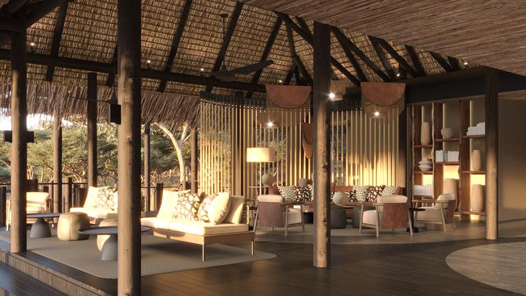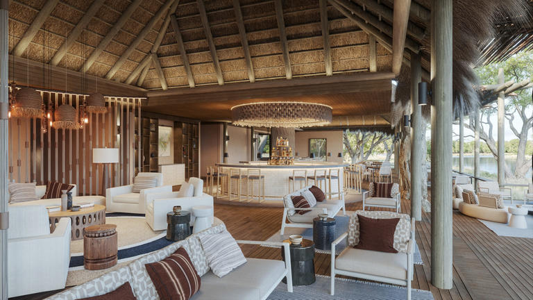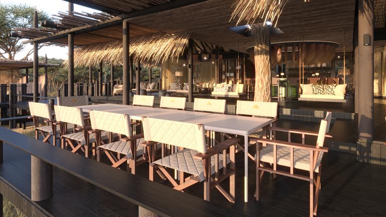 The main area is built on raised decking that wraps around ancient trees, creating a natural and inviting space to relax between activities. Guests can gather in the open-sided lounge or enjoy meals in the dining area, with a cocktail bar and plunge pool completing the relaxed and sociable atmosphere.