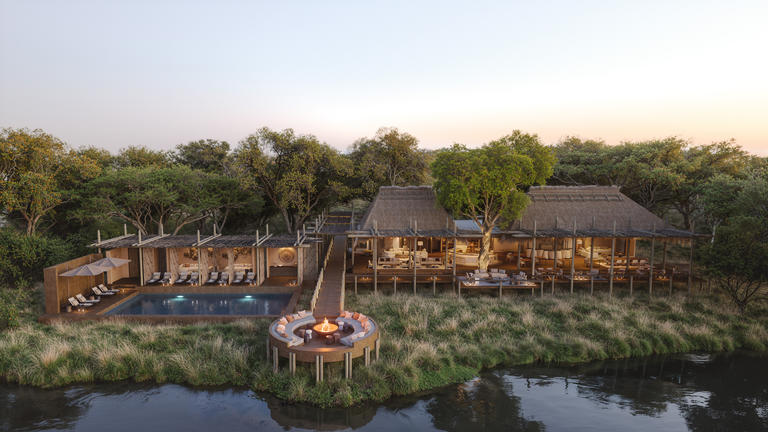 Guests can enjoy a drink in various settings, from the well-stocked bar to comfortable indoor lounges, or even in the outdoor viewing areas. The lodge’s swimming pool offers panoramic views of the surroundings, while the various alfresco dining spaces provide a beautiful setting for meals under the African sky. One of the most striking features of the lodge is the fire deck, a perfect spot for guests to unwind while gazing at the stars or the evening wildlife.