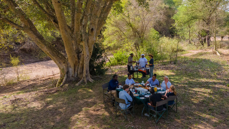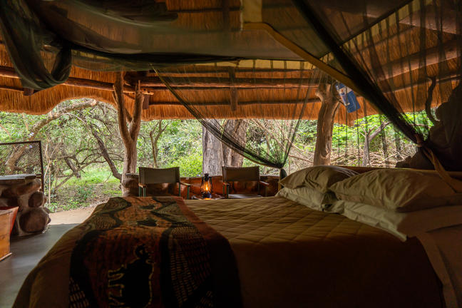 Lo Stone Camp si trova nel cuore della Mkhaya Game Reserve, sede di un ambizioso progetto di conservazione ambientale. L'architettura del lodge è piuttosto originale, in quanto le camere non dispongono né di porte né di finestre e le pareti sono di fatto dei muretti. Comunque sufficienti per mettersi al sicuro dalle iene (i leoni non sono presenti nella riserva).