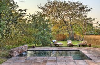 Built of thatch and timber, the lodge rises several levels, giving the impression of a vast open-plan tree house. Our rooms all have private balconies, most of which overlook a central waterhole, offering the opportunity to observe herds of buffalo, elephant and kudu, as the sun goes down, and hyenas later in the evening.