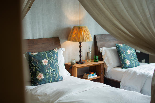 The Komati Tented Lodge offers 11 Noble and one Royal Suite tents with a private setting and five star amenities. Each tent has an extra large king size bed, comfort cooling/heating and en-suite shower with an outdoor bath, and private expansive teak sun decks with a plunge pool.