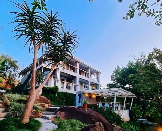Die Stannards Guest Lodge befindet sich in Knysna, einem Städtchen im Herzen der Garden Route Südafrikas, das eingebettet zwischen Bergen und subtropischem Regenwald am Ufer einer Lagune liegt. Die Stannards Guest Lodge liegt in Gehentfernung zur Lagune und ca. 6 km vom geschäftigen Stadtkern und der hübschen Waterfront entfernt. Die Knysna Lagune ist durch zwei Sandsteinklippen, den Knysna Heads, vom offenen Meer des Indischen Ozeans getrennt. Die Lodge selbst wird von einem großen bunten Garten umgeben. Viele einheimische Vögel wie der berühmte Knysna Loerie sind von der Veranda oder dem Sundeck aus im Garten zu beobachten. Der Salzwasserpool lädt zu einem erfrischenden Bad an heißen Sommertagen ein. Das sehr helle und einladend gestaltete Haupthaus beherbergt das Speisezimmer und bietet Ihnen im angrenzenden Lounge-Bereich Zeit, um bei einem schönen Buch gemütlich zu entspannen. Eine Bar steht Ihnen jederzeit zur Verfügung. Zum Frühstück bedienen Sie sich an einem reichhaltigen kontinentalen englischen Buffet.