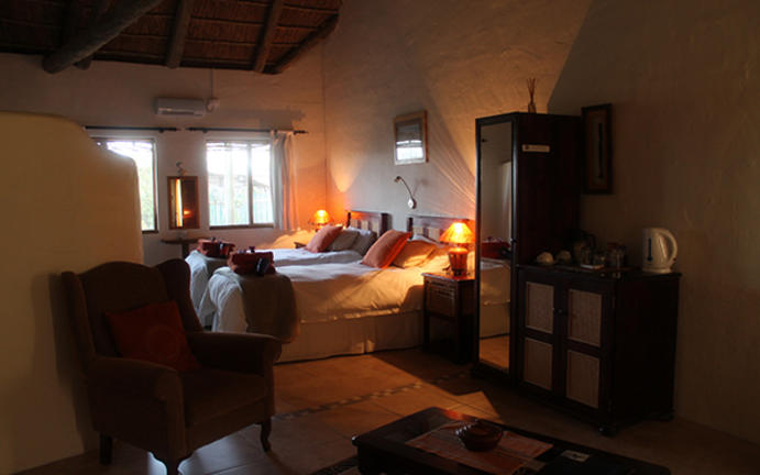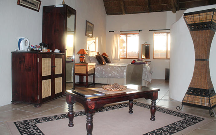Die Thabile Lodge befindet sich ca. 23 km östlich von Oudtshoorn und liegt auf einer 600 Hektar großen Farm am Fuße des Swartberg Gebirges. Thabile ist ein Sotho-Wort und bedeutet „Platz des Glücklichseins“. In dem großzügig angelegten Garten der Lodge gibt es eine große Vielfalt an einheimischen Pflanzen und viele Vogelarten. Die Gäste können das malerische Farmanwesen bei Naturwanderungen erkunden. Das Frühstück und das Abendessen werden auf der Terrasse des Haupthauses serviert. Die Thabile Lodge verfügt über 12 Zimmer, die sich in 6 freistehenden Cottages befinden. Alle Zimmer sind mit einem eigenen Badezimmer ausgestattet und haben eine eigene Terrasse, von der Gäste einen atemberaubenden Blick auf das umliegende Swartberg Gebirge haben. Ein Swimming Pool lädt an heißen Tagen zur Entspannung und Erfrischung ein. Außerdem stehen den Gästen ein kleiner Fitnessraum, ein Whirlpool und eine Sauna zur Verfügung. Im Hauptbereich befinden sich zudem noch eine gemütliche Lounge mit Fernseher und einer Bar.