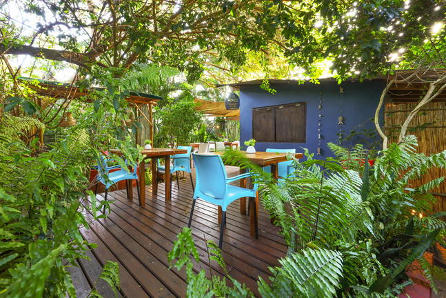Cottage in very private tropical garden. Bedroom with a mozzie net, fan, electric lights and power points and an en-suite bathroom. There is a separate lounge area for 2 beds for children. Open plan, fully-equipped kitchenette and dining area.