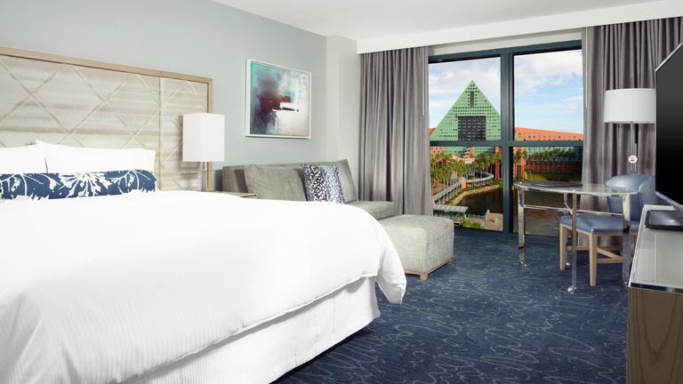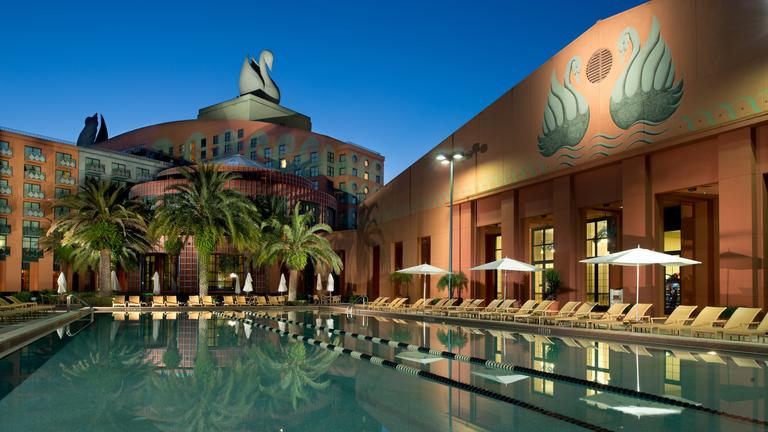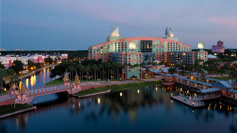 Walt Disney World Swan Hotel is a lakefront resort perfectly located within Walt Disney World with access to Epcot, Hollywood Studios, Magic Kingdom, and Animal Kingdom. The hotel has well-appointed and comfortable rooms and suites with private bathrooms, hairdryers, safes, coffee machines, and ironing facilities. Accommodations with private balconies are available. General facilities include a variety of dining and drinking establishments, on-site laundry facilities, a spa, a fitness centre, a swimming pool, a waterslide, and whirlpools.