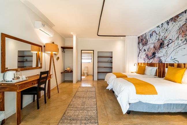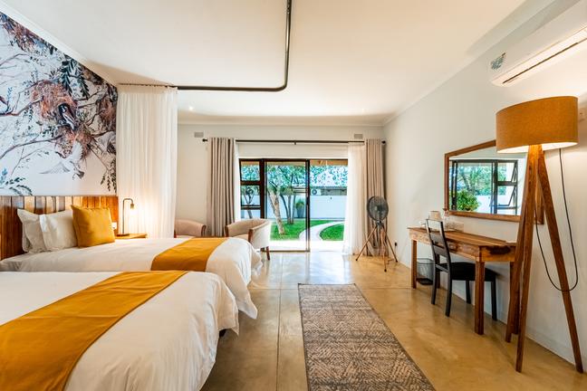 Our Superior Rooms at Kabakwe Guest Lodge offer a spacious and elevated stay experience, combining stylish comfort with thoughtful extras. Each room features a larger floor plan, a luxurious en-suite bathroom complete with a bathtub and walk-in shower, and elegant touches inspired by the natural beauty of Victoria Falls. Guests can enjoy plush bedding, air conditioning, complimentary Wi-Fi, tea/coffee facilities, and a private veranda overlooking the tranquil gardens. Ideal for those seeking a little more space to unwind, the Superior Rooms provide the perfect sanctuary for longer stays, special occasions, or guests who simply appreciate an added touch of luxury during their adventure.