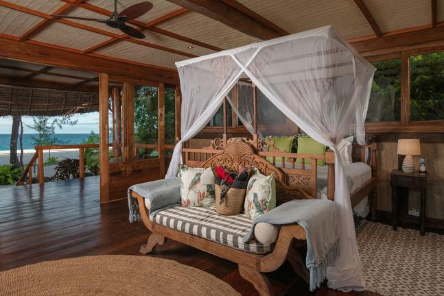 In addition to the main villa, the island features two traditional Tanzanian bandas, transforming the retreat into a nine-bedroom sanctuary that welcomes up to 18 guests in total comfort.