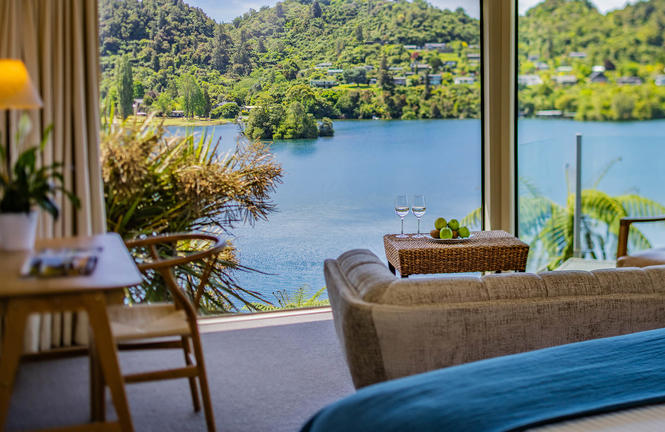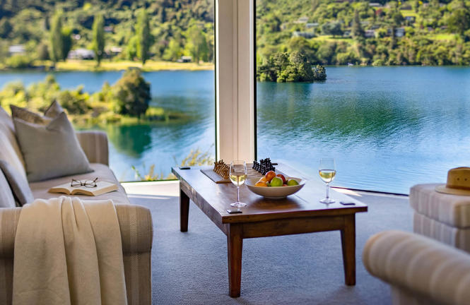 Fit for a King: twenty guest suites along with two exclusive owners' residences, the Alan Pye Cottage and Alex van Heeren Cottage, are dotted along the banks of the Waikato River and among verdant gardens, each opening onto rolling green lawns and with the sounds of birdsong and the burbling river as nature's orchestral score.