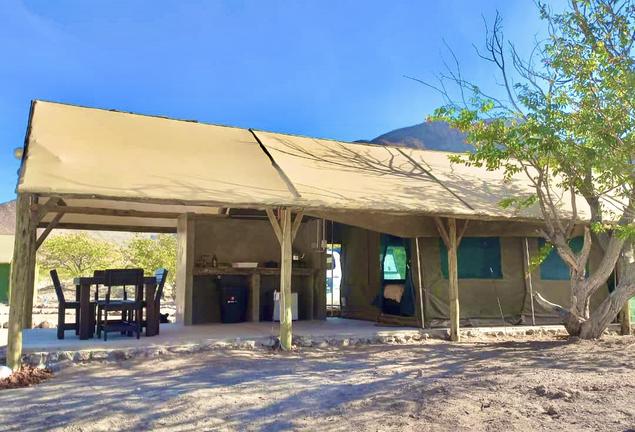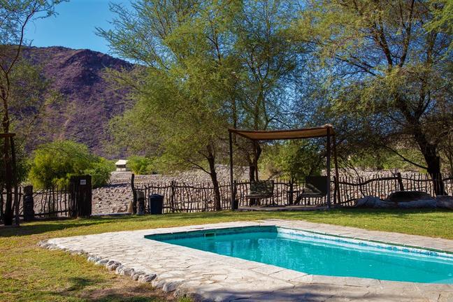 Khowarib Lodge ligt aan de oever van de Hoanib rivier die zich op dit punt een weg baant door de Khowarib kloof. De Hoanib rivier stroomt enkel wanneer de regenval flink is. Khowarib Lodge is de perfecte uitvalbasis om het afgelegen en ongerepte noord-westen van Namibia te bezoeken.