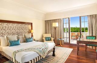 The Oberoi Udaivilas, Udaipur is set on the tranquil banks of Lake Pichola, surrounded by landscaped gardens and domed architecture. Nearby attractions include the City Palace, Jagdish Temple, and Sajjangarh Monsoon Palace. Guest rooms feature flat-screen TVs, air conditioning, private bathrooms, king-size beds, private terraces, semi-private pools, and cushioned bay window seats. Guests can savour fine dining at Suryamahal, Chandni, Mewar by Vineet, or enjoy drinks at The Bar and The Promenade. Facilities include two temperature-controlled swimming pools, a luxury spa, and a fitness centre.