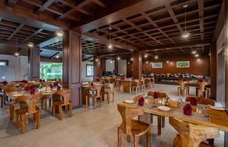 Sapana Village lodge is located at the edge of Chitwan National Park, nearby Sauraha, in a peaceful and inspiring environment. The lodge is renowned for its high comfort and has authentic Tharu decoration designed by local people. The on site restaurant offers you organic and healthy food, most from the property's own yard, with typical Nepalese and western dishes. The terrace is set-up in a stunning location with a panoramic views with elephants walking through the flowered garden for their daily bath, live atmosphere of local life of Tharu women carrying dry firewood and green leaves for domestic animals, washing clothes, children swimming in the river and fishing for fun.