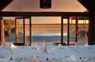 La terrasse en plein air offre une vue magnifique sur la dune d'Elim et le trou d'eau éclairé où vous pourrez assister au défilé passant d'oryx, springbok, chacal, écureuil terrestre et hyène, tout en dégustant une cuisine et un vin exquis.