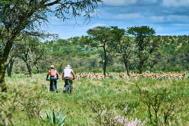 The following activities are part of the Otjimbondona experience: nature/game drives, farming experience, nature walks, fat biking, sundowners in the bush or at our fire place, a grill evening in our boma, in-house sauna and gym, wellness treatments in the comfort of your Villa or sun deck.