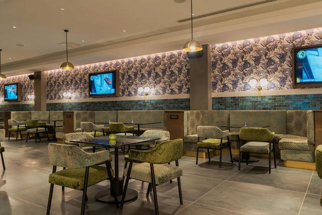 Near the games arcade and home theatre, this restaurant offers ample seating and lounging for the family to enjoy their desired activity, all within earshot of one another.