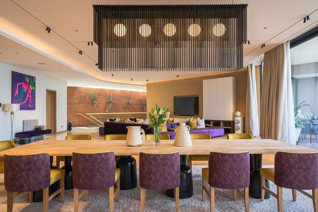 Your richly adorned master bedroom enjoys a spectacular private bathroom, while the large living and dining room provides space to unwind and entertain, surrounding the atmospheric fireplace. Beyond, an expansive multi-level terrace unfolds offering an array of unique hubs to enjoy the forest from every angle. Sip aperitifs on the open-air lounge, savour fresh grills on the barbecue terrace, and share stories of the day around the cosy firepit. Reaching out towards the greenery, chance a refreshing dip in your private pool at any time of day.