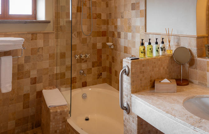 Balcony / Deck, Bath, Complimentary Wi-Fi, Detached Private Bathroom, Fireplace, Heated Towel Rails, Heater, Internet Access (Complimentary), Laundry Facilities, Lounge Area, Mini Bar, Pure Cotton Linen, Safe, Shower, Tea / Coffee, Underfloor Heating, Wheelchair Friendly