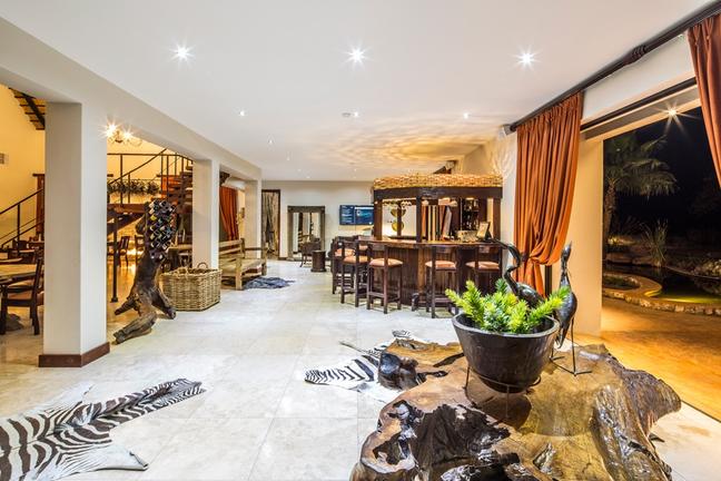 La Rochelle Lodge is located 40km north of Tsumeb, Namibia, nestled among Makalani palms and Acacia thickets. While not immediately adjacent, notable attractions within driving distance include Etosha National Park’s eastern gate, Guinas and Otjikoto lakes, and the Hoba meteorite. Guest rooms offer air conditioning, en-suite bathrooms, flat-screen TVs, mini fridges, and elegant furnishings. The on-site restaurant serves an intercontinental menu using local produce, paired with a curated wine selection. The lodge offers a range of amenities including guest transfers, an on-site swimming pool, and curated excursions such as game drives, with personalised activities arranged by the management upon request.