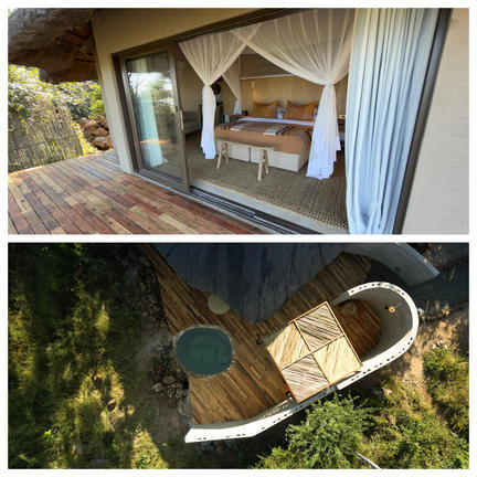 An ancient Camelthorn tree is the centrepiece of the lodge. Accommodation consists of eight rooms featuring a fireplace, private ground level deck, bath and shower. Every room has a canopy level balcony, accessible via a spiral stairway, which offers a private outdoor deck with hammocks.