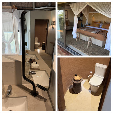 The woodlands surrounding the rooms are dotted with small water baths attracting woodland creatures such as bushbuck, mongooses and an abundance of interesting and colorful birdlife. There is an underground hide by a waterhole less than a kilometer away where elephants can be photographed from toe level. Being at such close proximity to these giants is truly breathtaking!