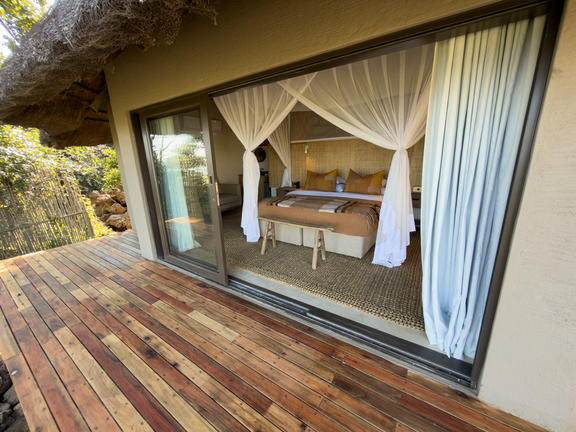 All 8 river facing suites have spacious internal and external living areas, a bath, an inside and outside shower, fans, air conditioning, mini bar, tea/coffee facilities, an open lounge and a private splash pool. Each suite has a view of the river offering the opportunity to see the famous Chobe elephants, migrating zebra or buffalo grazing on the floodplain below, depending on the season.