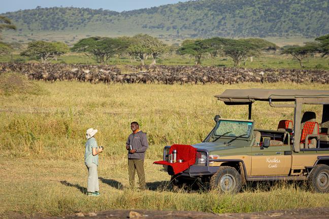 Tucked away at the back of Nyaroboru Hill, with a stunning vista across to the Musabi Plains is this little gem. An intimate mobile camp with only six tents – including family and triple share options – shares a traditional safari camp feel with hot bucket showers, stories by the camp fire and under infinite African night skies. This is where you can feel enveloped in the nearby acacia forest, listening to the calls of the night.