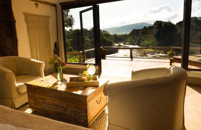 An einem wunderschönen Ort im Schatten riesiger Laubbäume am Ufer des Flusses Mara gelegen und mit einer eigenen riesigen Veranda und einem Bad mit Blick auf den Fluss ist dies das perfekte Zimmer für eine private Luxussafari.