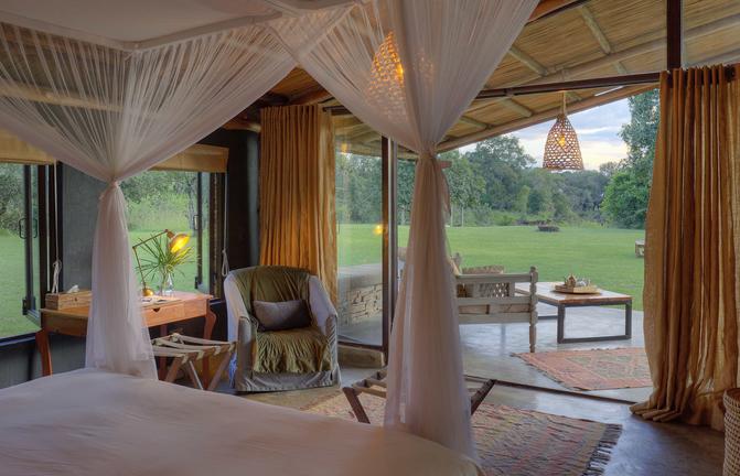 Damit dies für exklusive Buchungen funktioniert, haben wir ein atemberaubendes privates Esszimmer, ein Wohnzimmer, eine Bar und eine Feuerstelle im Freien im Schatten riesiger Fieberbäume eingerichtet. Es hat ein völlig anderes Flair als die Hauptlodge und ist ideal für Paare, die zusammen reisen, Flitterwochen oder besondere Familienreisen, bei denen Privatsphäre von größter Bedeutung ist.