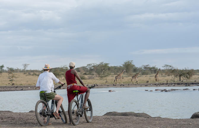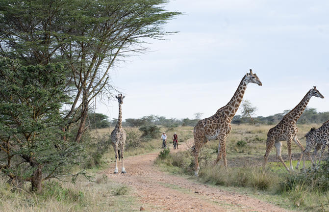 Reiten Sie an der Seite der Giraffe und des Zebras von Naretoi oder begeben Sie sich zum Mara Training Center, wo Sie die Wilde Shamba besuchen oder den Frauen beim Perlenmachen zusehen können. Oder erkunden Sie die nahe gelegenen Dörfer und das Ackerland, das oft von Kindern begrüßt wird, die mit einem riesigen Lächeln neben Ihrem Fahrrad herlaufen!