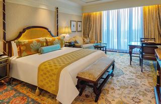 The plush interiors are adorned by fine art and artefacts that weave a spell of luxury. The Maharaja Suite comes with a living room, study, dining area and master bedroom with a separate walk-in wardrobe. The king-size bathtub and Jacuzzi as well as the separate shower stall and water closet only add to the feel of luxury. Built into the suite, for the discreet comfort of its distinguished guests, is uninterrupted relaxation, recreation and complete privacy.