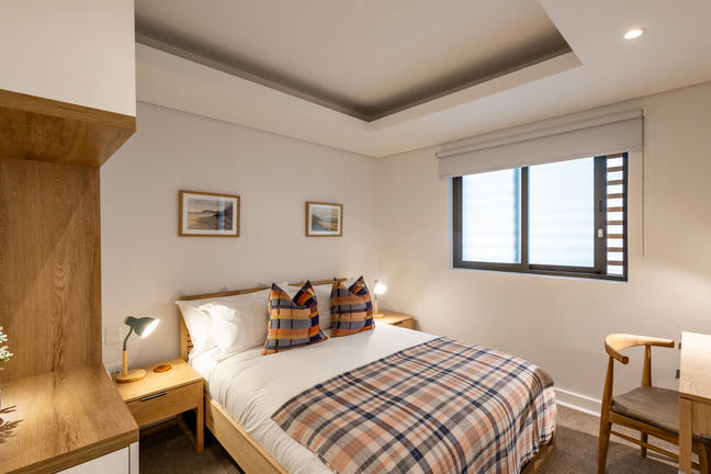 A luxurious 3-bedroom, self-catering apartment designed for families or friends. Features include ensuite bathrooms (3 showers + main suite bathtub), a fully equipped kitchen with microwave, toaster, fridge, kettle, dishwasher, and washer/dryer. Enjoy a flat-screen TV, fast Wi-Fi, climate control, and an open-plan layout with stunning views. Conveniently located on Main Street near shops, restaurants, and attractions. Beds: 1× King, 2× Queen.