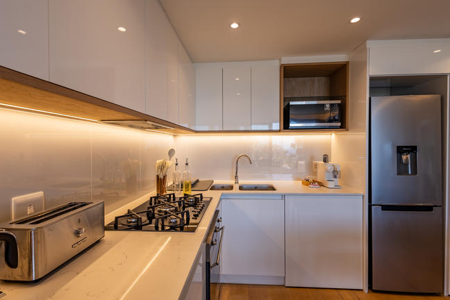 Air Conditioning, Balcony , Balcony / Deck, Bath Towels, Bath, Bed Linen, Complimentary Wi-Fi, Cooking Equipment, Cooking Facilities, Electrical Outlets, En Suite Bathroom, Ensuite, Fridge, Fridge/Freezer, Hairdryer, Hand Towels, Iron / Ironing Board, Kitchenette, Laundry Facilities, Lounge Area, Lounge, Microwave, Safe, Shower, Smoke Alarm, Table, Tea / Coffee, Television, Wardrobe
